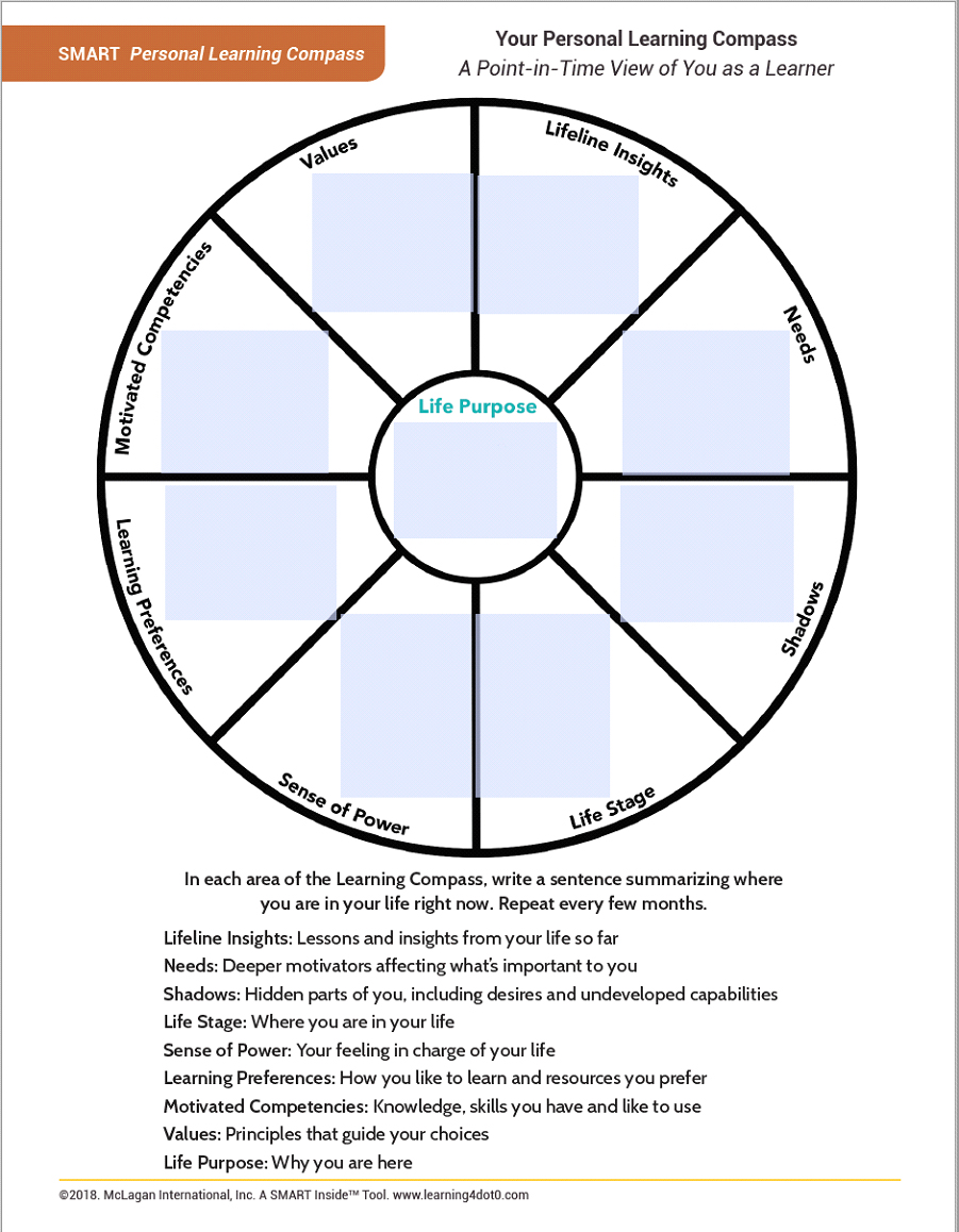 Download the Your Personal Learning Compass (in Tools). Jot down a few words to summarize where you are now in each of the Compass areas.
