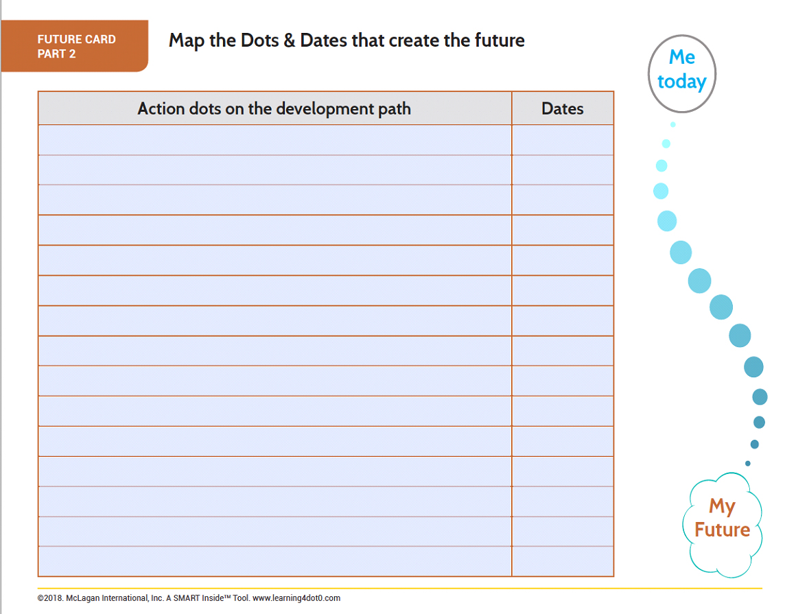 Add to the dots and dates on your Future Card when you discover new learning activities (Dots) to add to your journey.