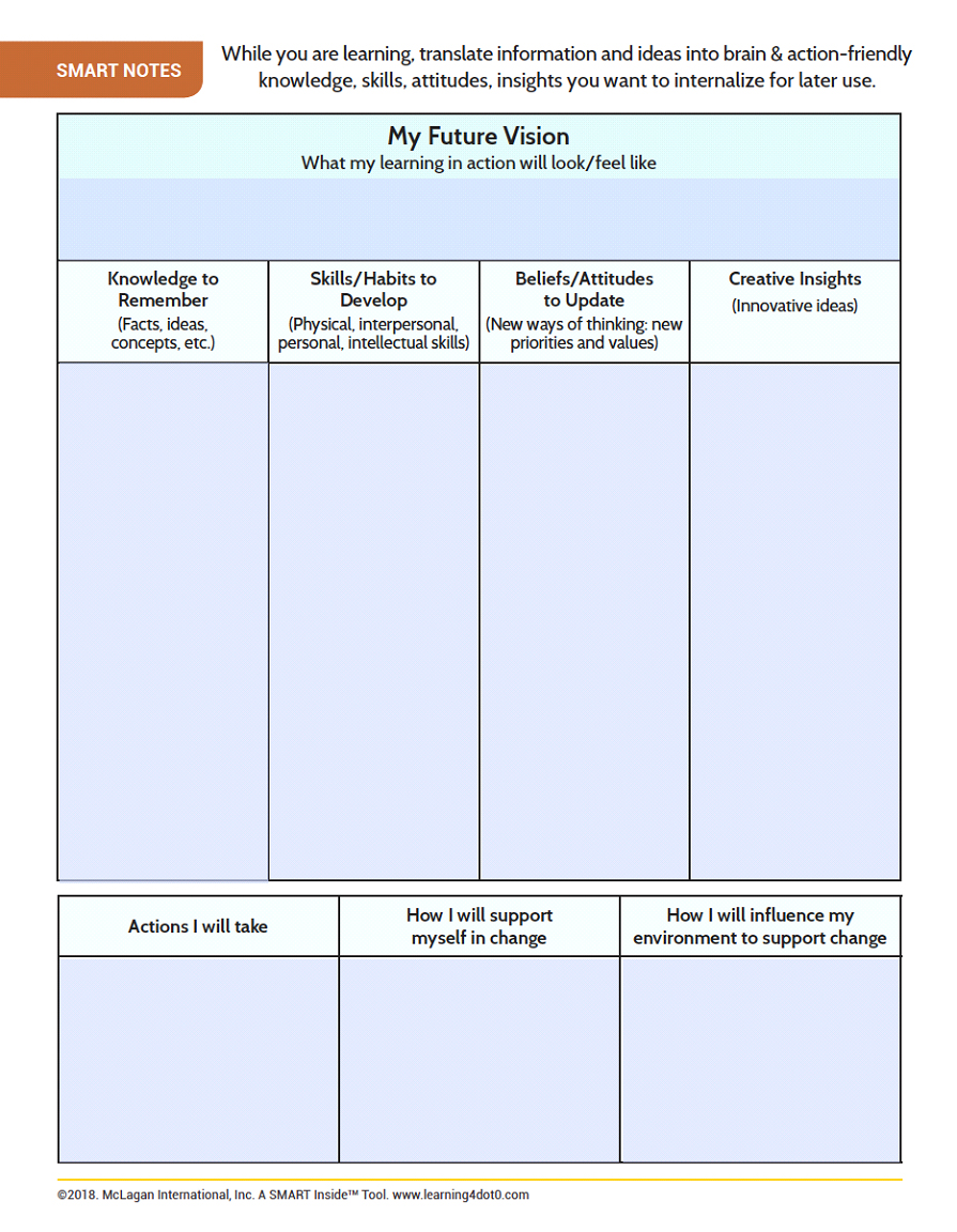 When you have a longer-term learning goal that will take time to achieve, let the 7 SMART Learning 4.0 Practices guide you. Follow any or all of the steps below to help you be successful when you have a longer term learning and change target.