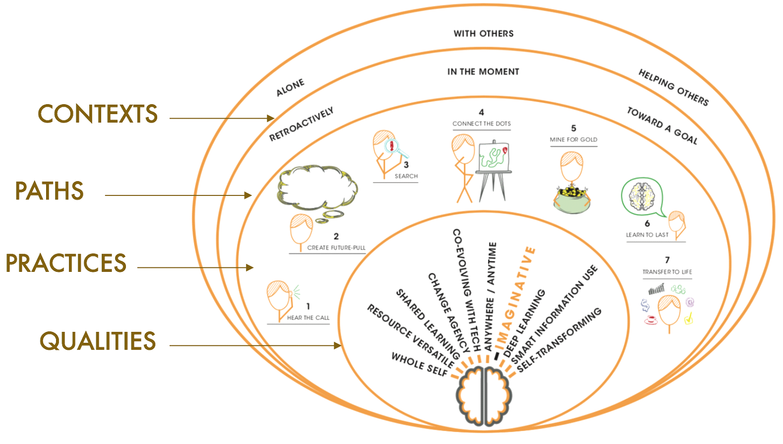 Connect the Dots: There are three learning paths: in the moment, toward a goal, retroactively from experience. 4.0 learners identify learning actions and manage successful journeys on all three.
